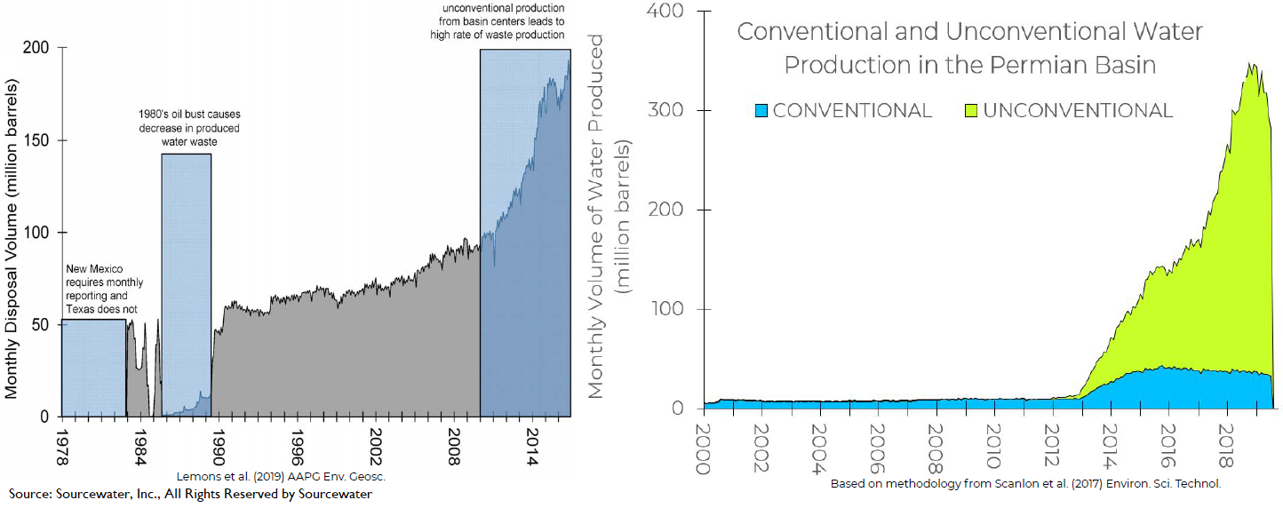 With the Permian dominating oil production, this amounts to an staggering volume of saltwater, every day. The data (see next Figures coming from the smart folks of Sourcewater, Inc.) clearly shows that horizontal drilling began the shift from 2010, but the trend kicked into high gear as the shale formation known as the Wolfcamp began its development since 2013.